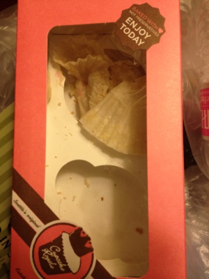 Well, clearly our two cupcakes got eaten. But this was an instance where our addiction to sugar outweighed our need for an excellent cupcake. The texture was dense and moist which I really liked. The flavors were basic vanilla. I must admit that after my disappointment with the ice cream, I really didn’t feel motivated to try their more adventurous flavors. Not to mention, vanilla is the gateway flavor. If you can’t pull that off well, should I be scared?!?